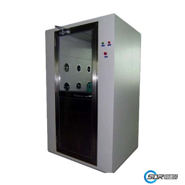 雙人雙吹風淋室是指一次吹淋過程中通過2人用的風淋室,尚德爾凈化針對潔凈室工作人數在30人左右專門設計的風淋室,雙人雙吹風淋室工作原理是空氣由風機的送風經初效過濾器進入靜壓箱,經高效空氣過濾器過濾后,潔凈空氣以23~27m/s的超強風速從風淋室的噴嘴高速噴出,風淋室不銹鋼噴嘴角度可調節,可有效地吹除人身或攜帶物品表面附著的塵埃,塵埃再回收進入初效空氣過濾器,如此循環可以達到風淋除塵的目的。